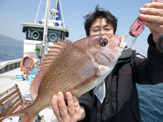 水温も安定してきたのか真鯛の当たりがボチボチと戻ってきましたよ(^_-)-☆
