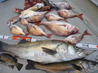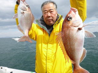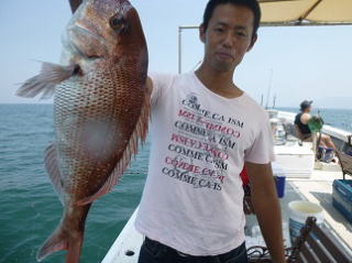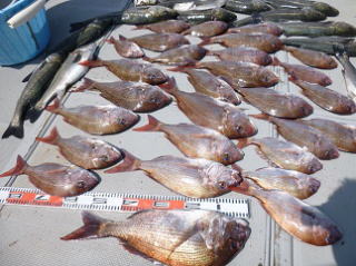 コンスタントに真鯛の当たりが有るポイントではサイズも良く刺身サイズが大半でした。
