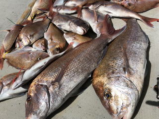 ダイジェスト釣果 活きアジを餌に呑ませ釣り&鯛サビキでの釣行です。