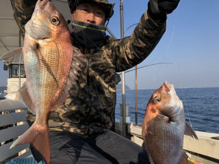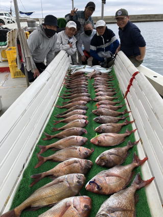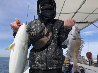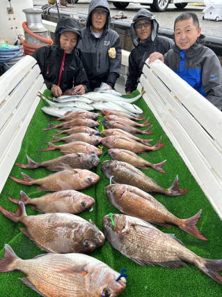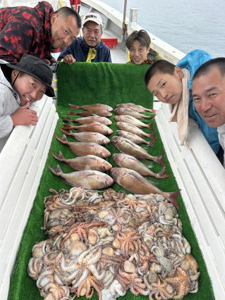 二本立て便は難しく正直 鯛だけ良かった日、タコだけ良かった日、鯛もタコも良かった日と 日替わり釣果となってますが、これから先もお客様の要望と潮や海状況にて鯛サビキ&真ダコ狙い頑張って出船しますので是非チャレンジお待ちしています。<m(__)m>