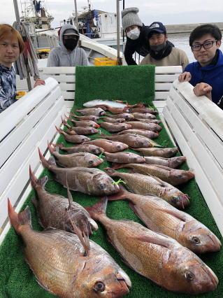 この先は確保してる活き餌無くなり次第 呑ませ釣り終了として 冬の真鯛 根魚とターゲットを変え頑張って出船しますので今年も三幸丸宜しくお願い致します。m(__)m