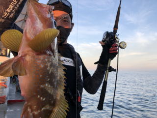 時間が過ぎ潮のマックスが抜けると同時に感度が底から浮き上がる そこからはジギングに当たりが出始め二人三人と同時にヒット~