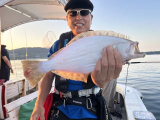 大潮に当たりポイントは潮の流れ早く沈黙時間もありましたが時合を物に出来たお客様には当たりも多く55㎝を頭に4枚 3枚とお刺身 塩焼きとなりました(*^^)v